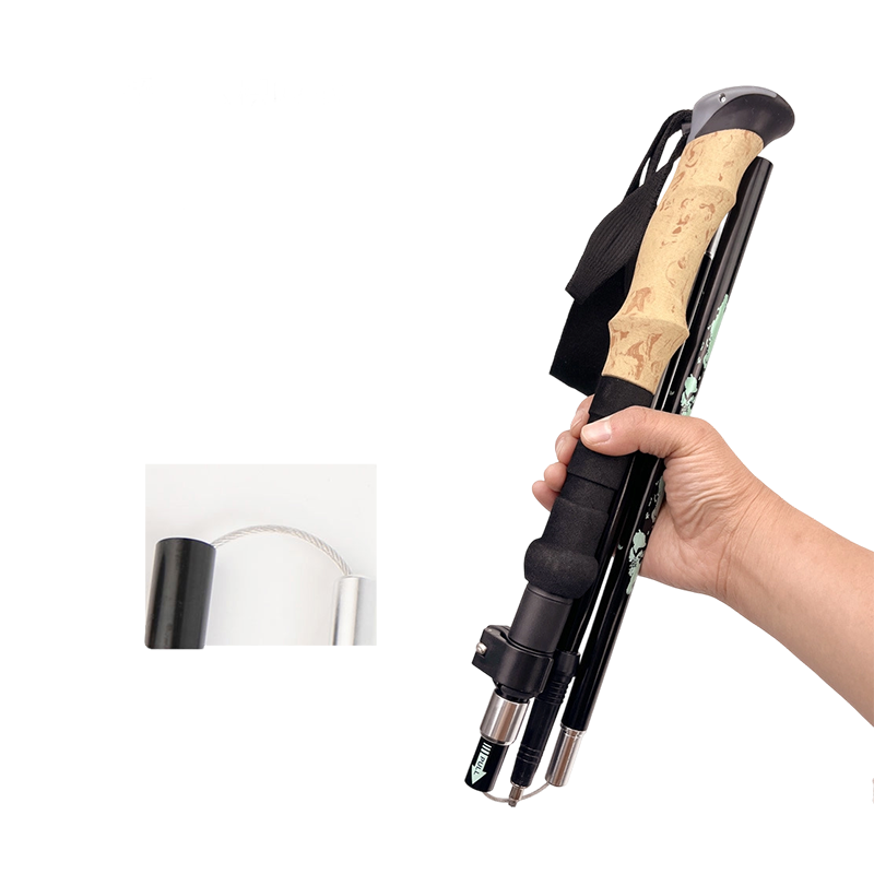 • Aluminum alloy three-section telescopic folding external locking trekking pole straight handle
